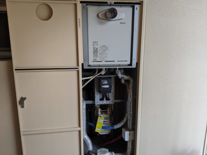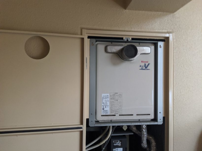 緑区滝の水のお客様から、給湯器から異音がするようになったので、使用年数も10年以上経っているので給湯器を交換したいと連絡をいただきましたので、リンナイPS扉内前方排気RUF-V2001SATから、後継機種のリンナイRUF-A2005SAT(B)に交換させていただきました。