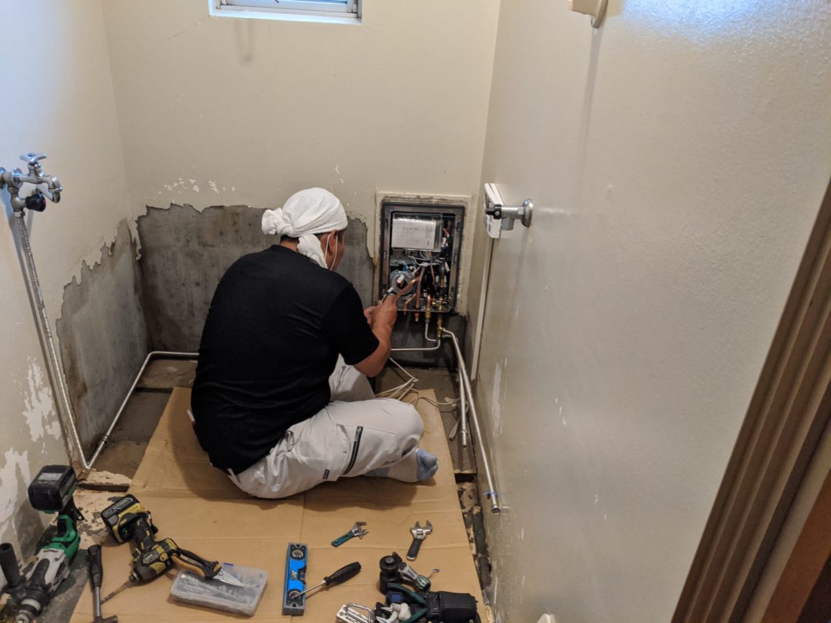 ホールインワン給湯器取替中